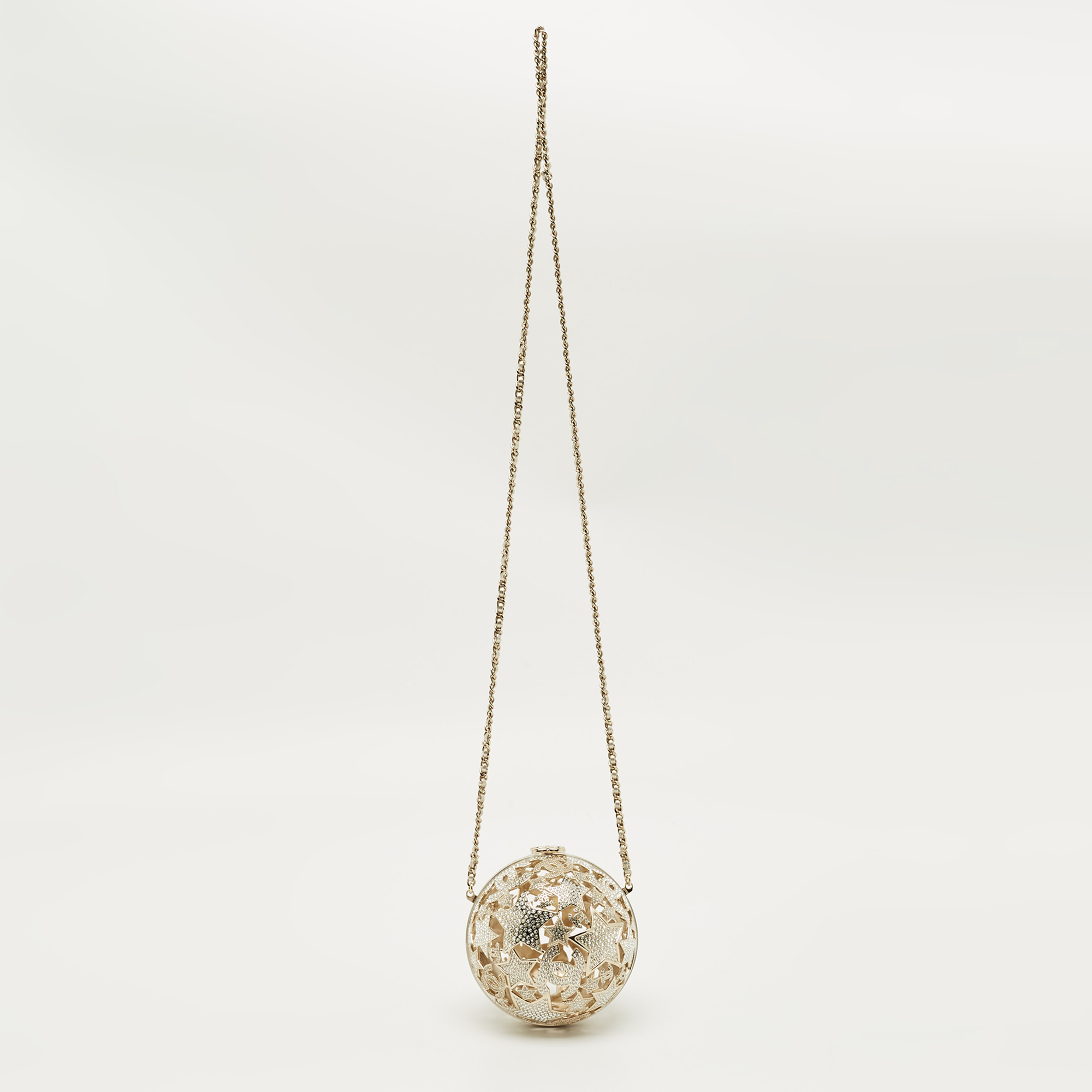 Chanel Gold Tone Metal and Crystal Sphere Minaudiere