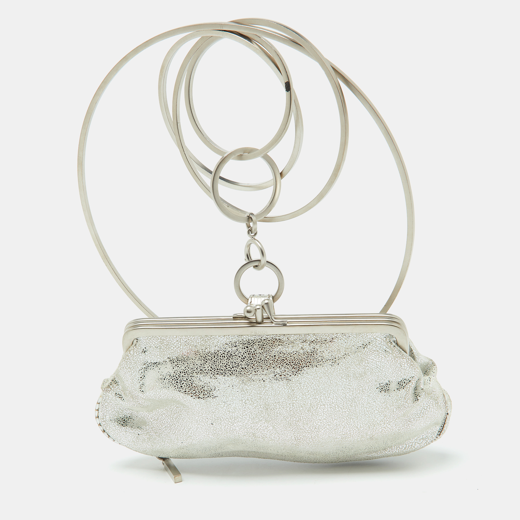 Fendi Silver Suede Rings Soft Clutch